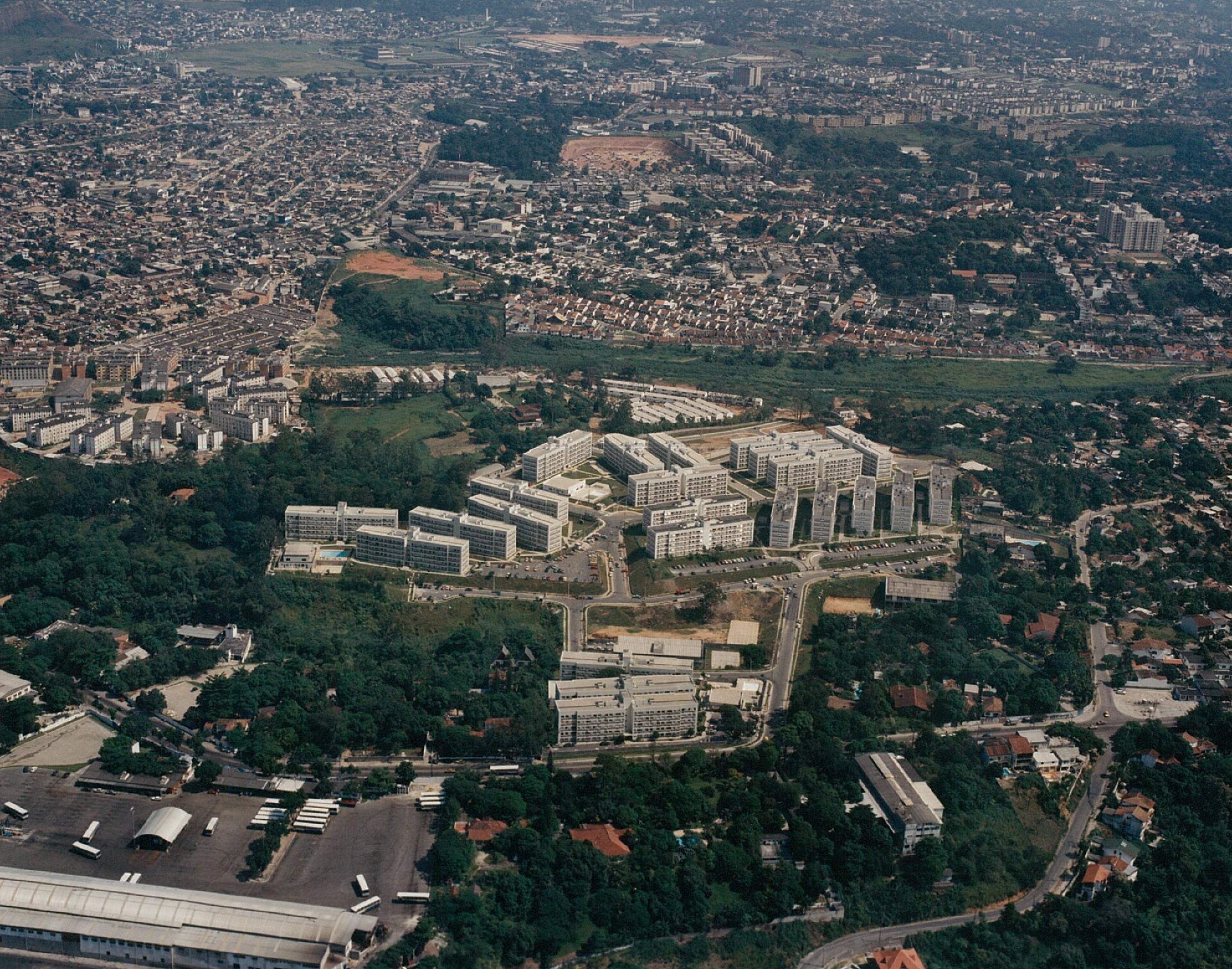 Cinco prédios com 5 andares cada, totalizando 300 unidades